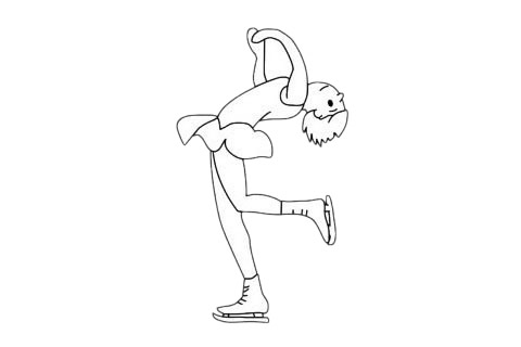 花样滑冰运动员简笔画分步骤画法步骤是:画出运动员侧脸,加上头发,画出上半身,加上腿,画出穿滑冰鞋的脚。