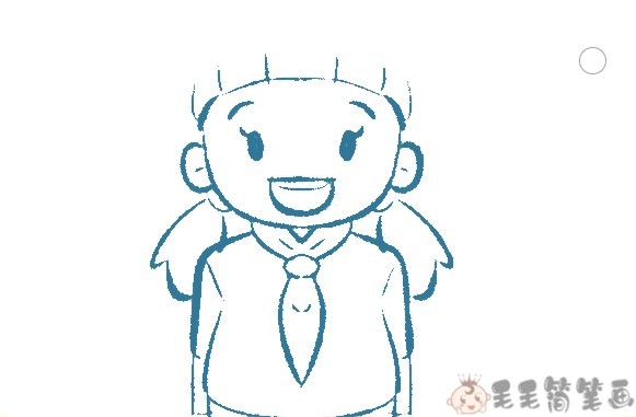 第二步:完善五官后,我们给头顶画上一些刘海,脖子的位置就直接画上红领巾