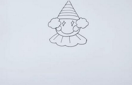 用三角形给小丑画上帽子,小丑的头部形状大致就画好了