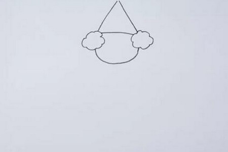 然后用弧线画出小丑的脸,两团卷毛刚好分布在两边耳朵的位置