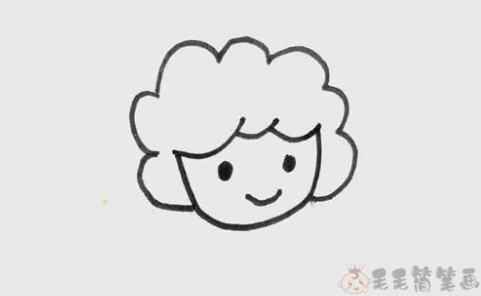 第一步:首先用波浪线画出妈妈蓬蓬的头发,往下画出脸在上面画出眼睛和向上弯的嘴巴。妈妈的头部就画好了。