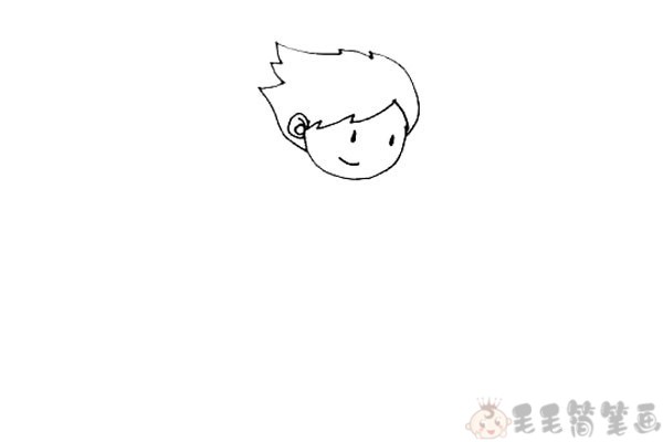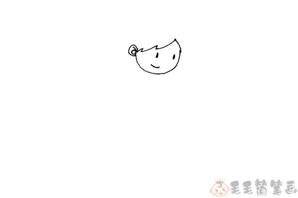 第二步:脸的上方,用小折线表示额前的头发,眼睛画得靠右一些,嘴巴带点弧度。