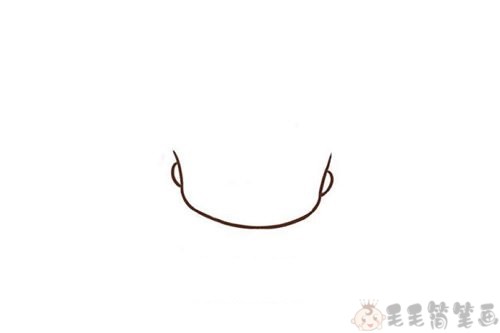 第一步:画出小丸子的下巴和耳朵,可以画的宽而圆润一些