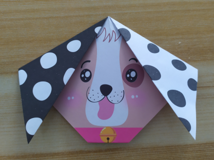 前两天父亲节,女儿想要送爸爸一只纸折的小狗,因为爸爸喜欢小狗,于是一起动手折了只纸小狗。