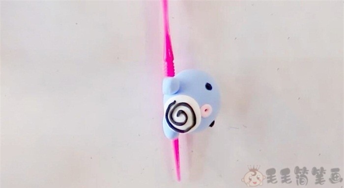 第三步:接着用浅蓝色粘土做出小章鱼的两只触手后,将触手粘在身体两侧