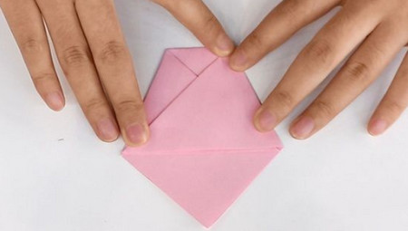 把下边的角往上面折,翻过来,一个小碗就折好了。