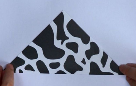 准备一张正方形彩纸,沿对角线对折成三角形。