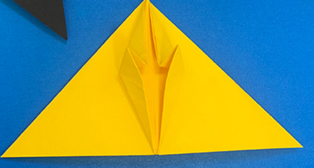 第四步:将上面的两个角向垂直线折叠。