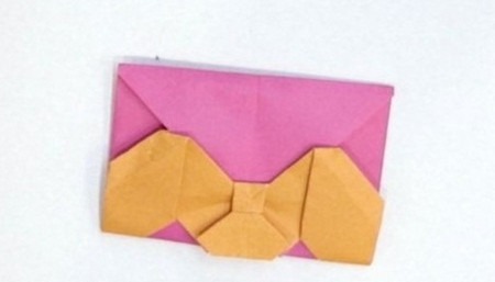 再把上角往下折,插到小正方形里面去,这样,一个长方形信封就折好了。