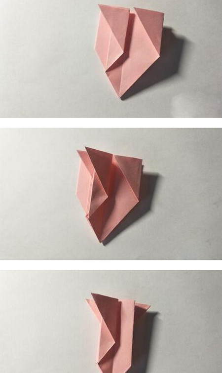8、每个角再反折回一半,按图示操作: