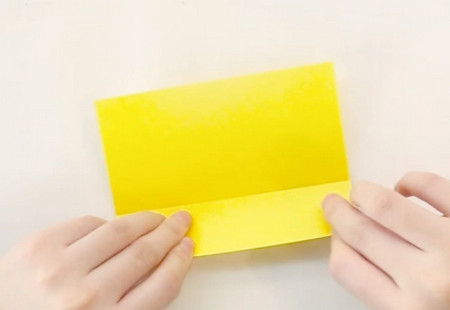 1、准备一张正方形折纸,沿中线对折,折成4等分,两边向中间对折,开口朝上。