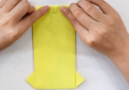 1、准备一张长方形彩纸,上下两边对齐中线折叠。
