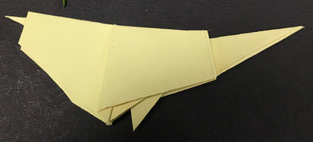 第十一步:尾巴部分向里折回,向上翻折,压平
