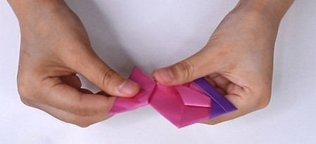 10、沿开口处上翻,折成梯形的鱼尾巴。