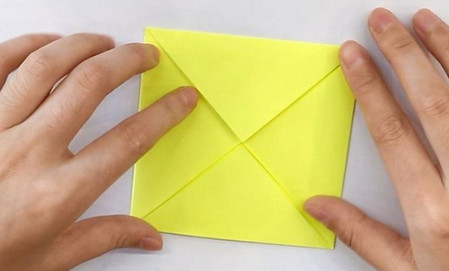 1、准备一张正方形彩纸,上下左右对折,展开。