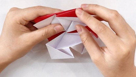 2、左右对齐中线折叠,上下对齐中线折成小正方形。