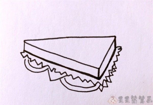 第三步: 在这个三角形下面画一片生菜叶子,用锯齿状的线就能完成