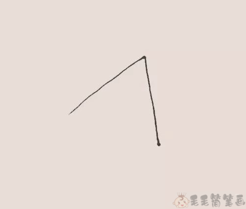 第二步:然后沿着尖角向下画出两道线,为接下来的透视做准备