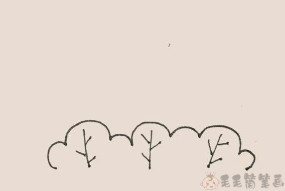第一步:用像画云朵一样的方法,画出地上的草丛