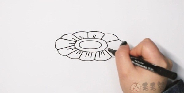 第一步:首先画出月饼像花瓣一样的上层轮廓,并在上面添加一些月饼的纹理线条