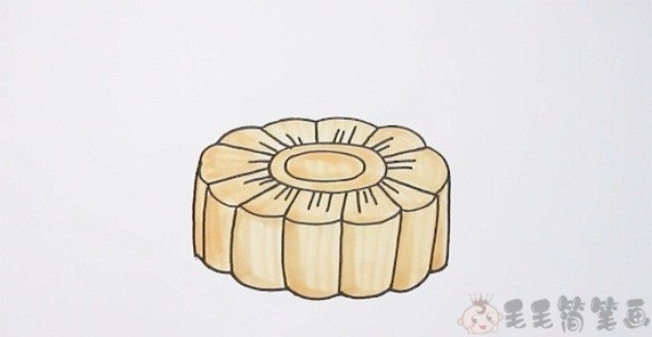 第三步:最后给月饼整体涂上浅黄色,适当的加重一些阴影部分,一个好看又美味的月饼就画好了