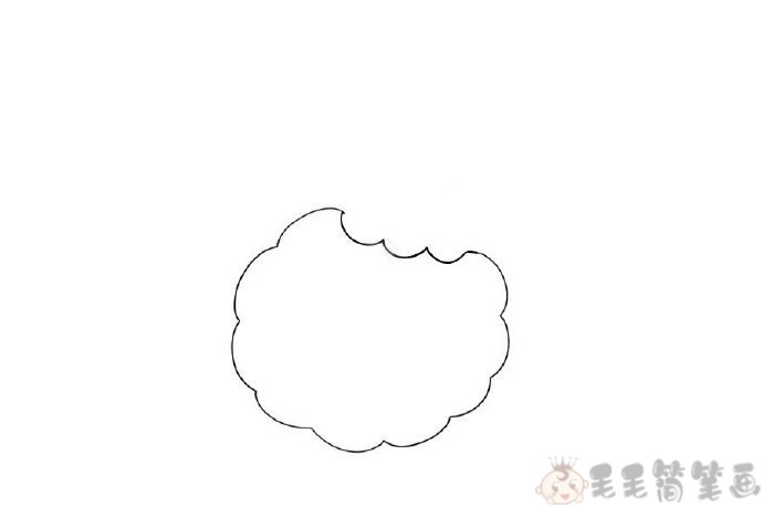 第二步:在月饼的右上角画上一个缺口的形状,这里也不要用直线来画哦,要用波浪线的形式来画,有一种被咬了几口的感觉