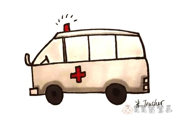 第一步:先画出救护车的车顶