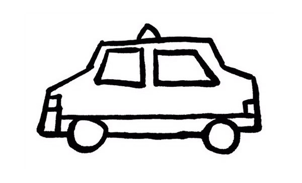 出租车简笔画步骤二:画过小汽车的小朋友们现在画出租车的车头和车尾时候不是手到擒来呢?