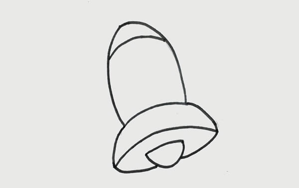 步骤一:首先画出半个椭圆,在上面画出飞船的船头,往下画出飞船的发射装置。画出一个倒月牙儿和一个半圆。