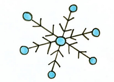 最后在圆圈里,涂上蓝色,这样,雪花简笔画就完成了。