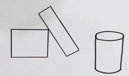 再在正方形和长方形的右下侧,先画出一个圆柱体。