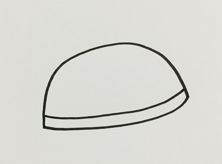 第一步:首先要画出草帽半圆形的帽子顶部,在下端画出草帽的长条边线。 第二步:再将草帽的宽大帽檐画出来,帽檐的边缘线条要画出细微的参差不齐的感觉。 第三步:然后画出帽顶与帽子边沿上的褶皱线条后,再在上面画出一些横线编织的小痕迹。