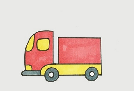 最后涂上颜色。这样一辆大卡车的简笔画就画好了。