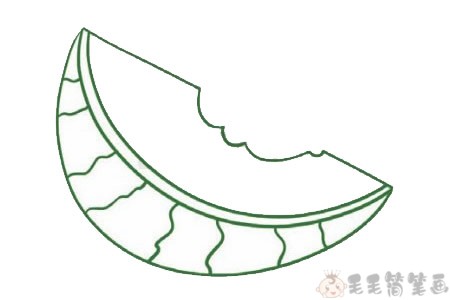 第一步:画一瓣被咬了几口的西瓜的外轮廓。