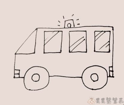 第三步:前面画上一个三角形,后面画上三个长方形作为车窗,再画出一点高光的感觉。