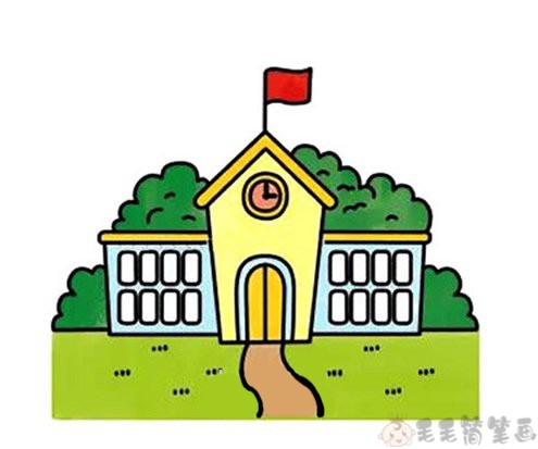 第六步:最后,再涂上漂亮的颜色,美丽的学校简笔画就完成啦