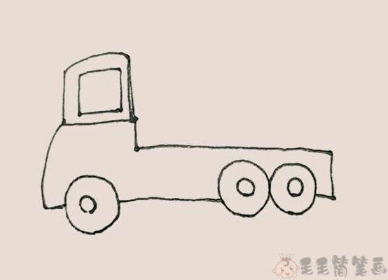 第二步:然后再画上两条横线,上短下长,并在前方画上一个方形