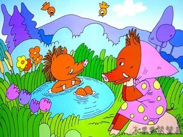 野猪妈妈急坏了,忙去找医生,河马大夫说:“翻过三座大山,有一眼神奇的泉水,你带小野猪去洗洗吧,一天洗一次,一定要洗三个十天。”