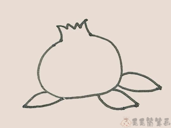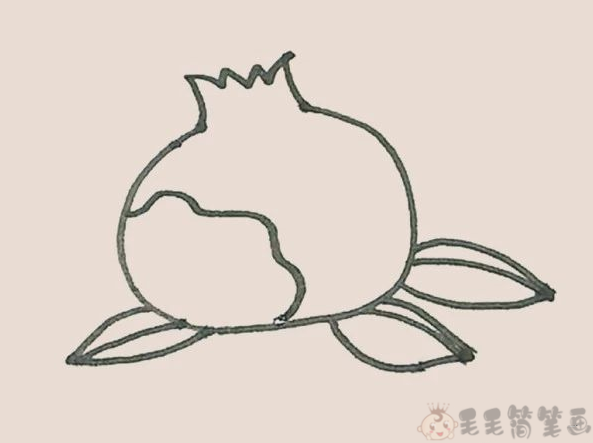 第五步:叶子补上纹路,石榴上面用波浪线圈出一块,表示这里的皮已经剥开了