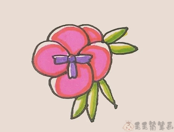 第六步:最后涂上好看的颜色,三色堇就这样画好了