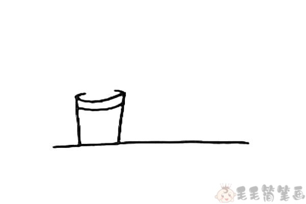 第一步:首先画一条线,这是地面。然后再画出花盆,花盆顶部记得留一个口不要连起来