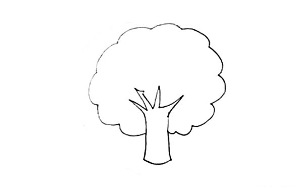 第一步:先画出苹果树粗壮的树干,它的树干一般比较短。
