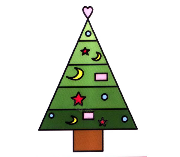 步骤五:给圣诞树加上颜色,涂上颜色的圣诞树简笔画如上图。