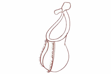 猪笼草简笔画的画法:画出捕虫笼的“口”部,画出捕虫笼的外形,笼口填上中黄色,给捕虫笼填上红色。