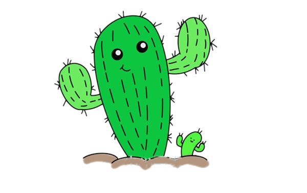 步骤六:最后涂颜色,这样卡通仙人掌简笔画就完成了!