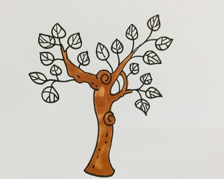 最后给桑树叶涂上绿色,这样一颗简单又漂亮的桑树就画好了。