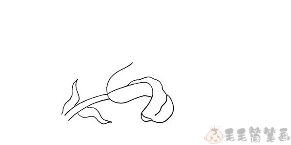 第三步:再茎秆的末端用一道U型弧线画出花朵的大致外形