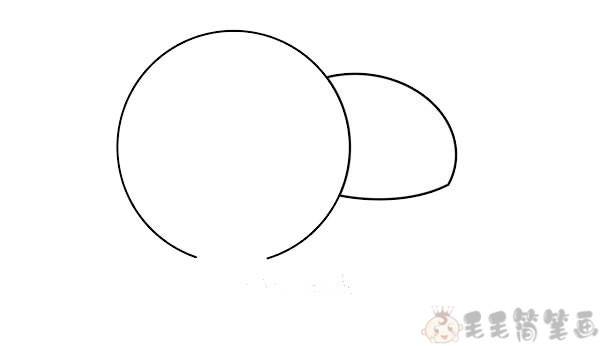 第一步:画一个大大的圆底部开口,右边再画一个椭圆