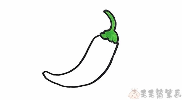 第一步:先画出辣椒蒂,弯弯向上翘起